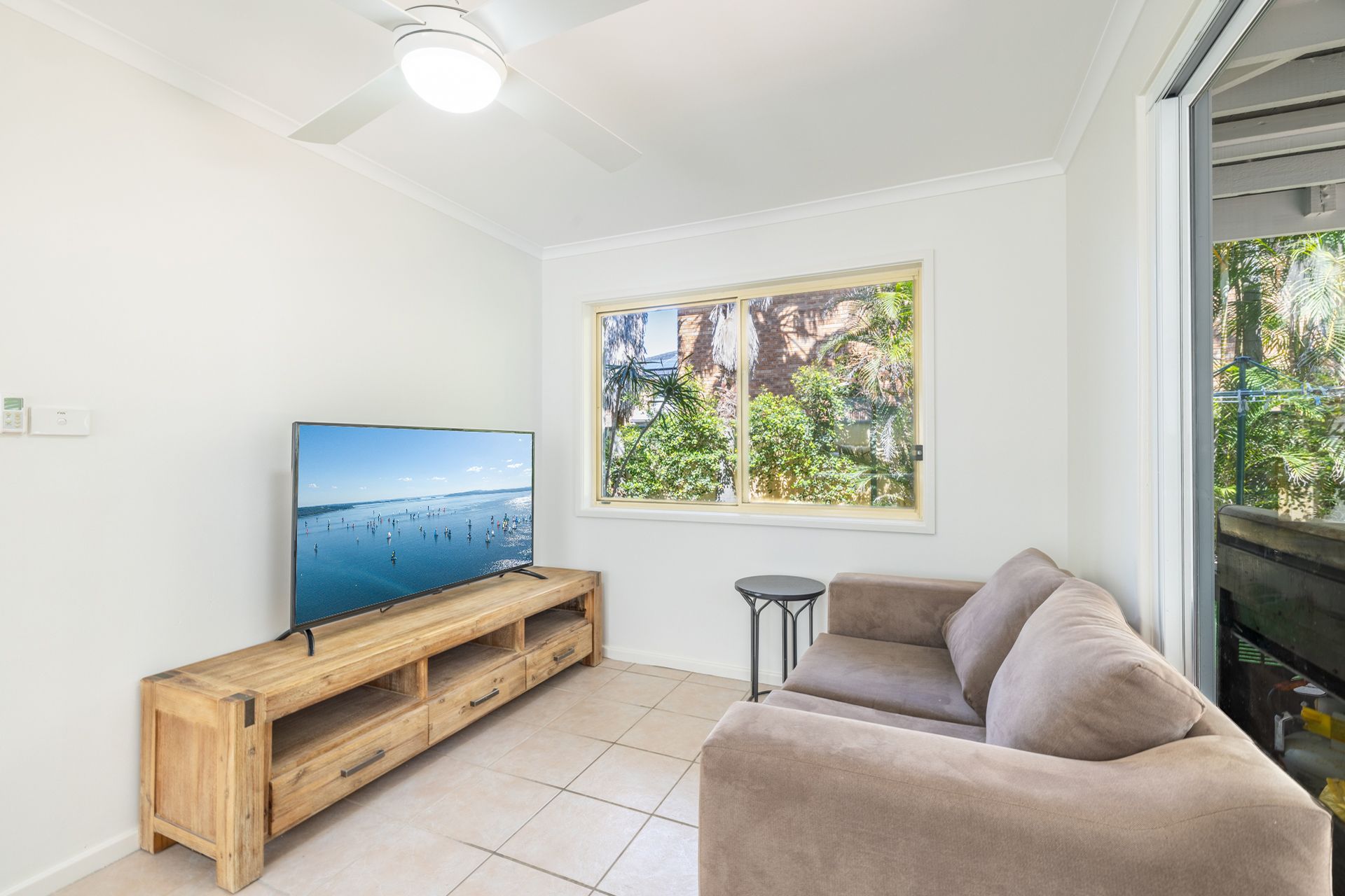 Rumpus Room (open plan downstairs) - Queen Bed + Ceiling Fan + courtyard access
