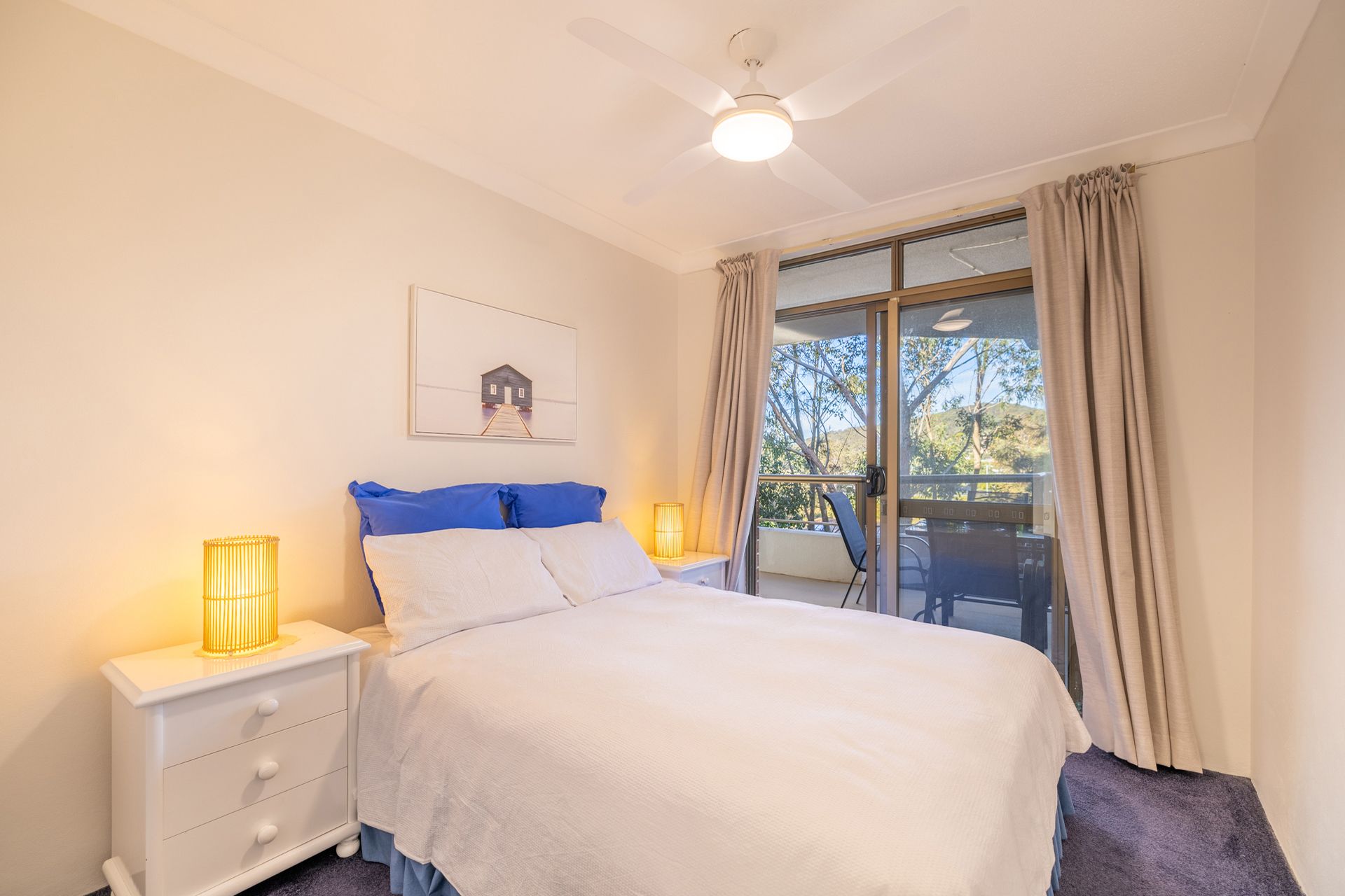 Bedroom 1 - Double Bed + Ceiling Fan + Balcony Access