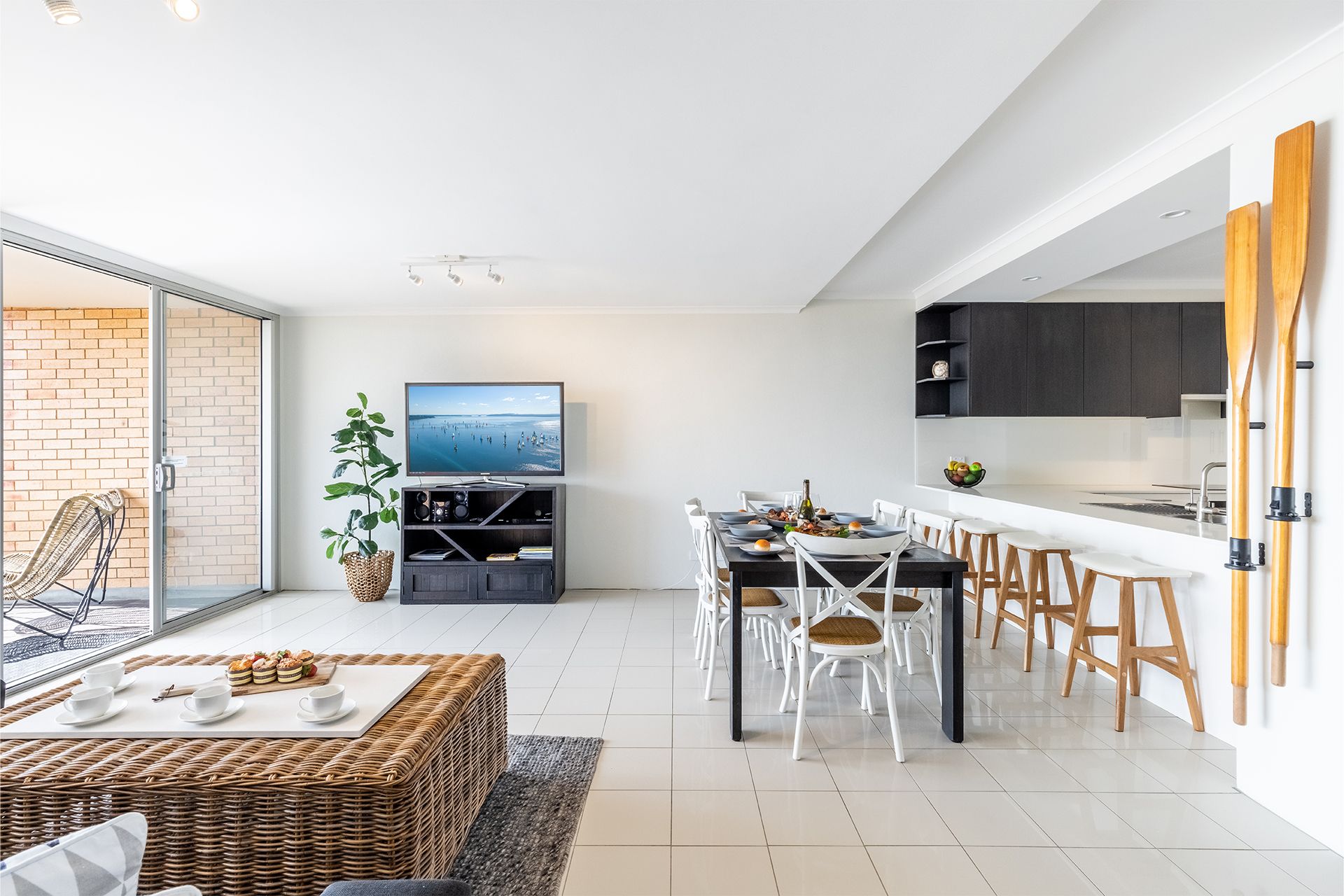 This sophisticated unit is modern in design and stylishly tiled throughout. The open plan living room/ dining area opens out onto a private balcony with alfresco dining, perfect for those relaxing casual afternoons. There is a brand-new renovated kitchen with Caesar Stone bench tops, dishwasher and complete cooking facilities.