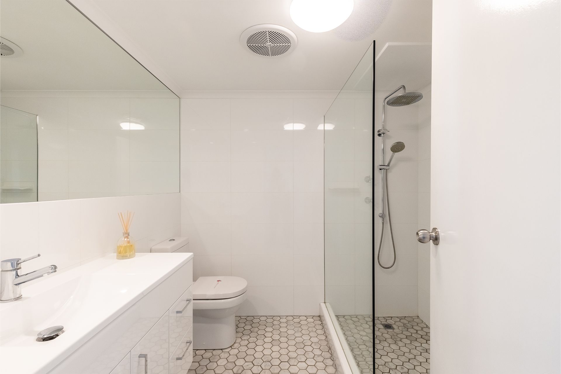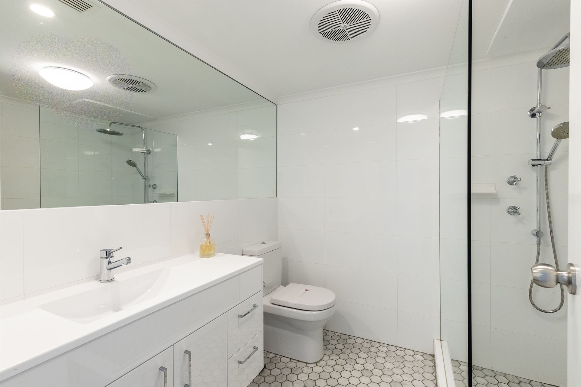 Two bedrooms both providing ceiling fans and a spacious, freshly renovated bathroom with an open shower and rain shower head, beautiful vanity and wall to wall mirror gives you the feeling of space and seamless comfort.