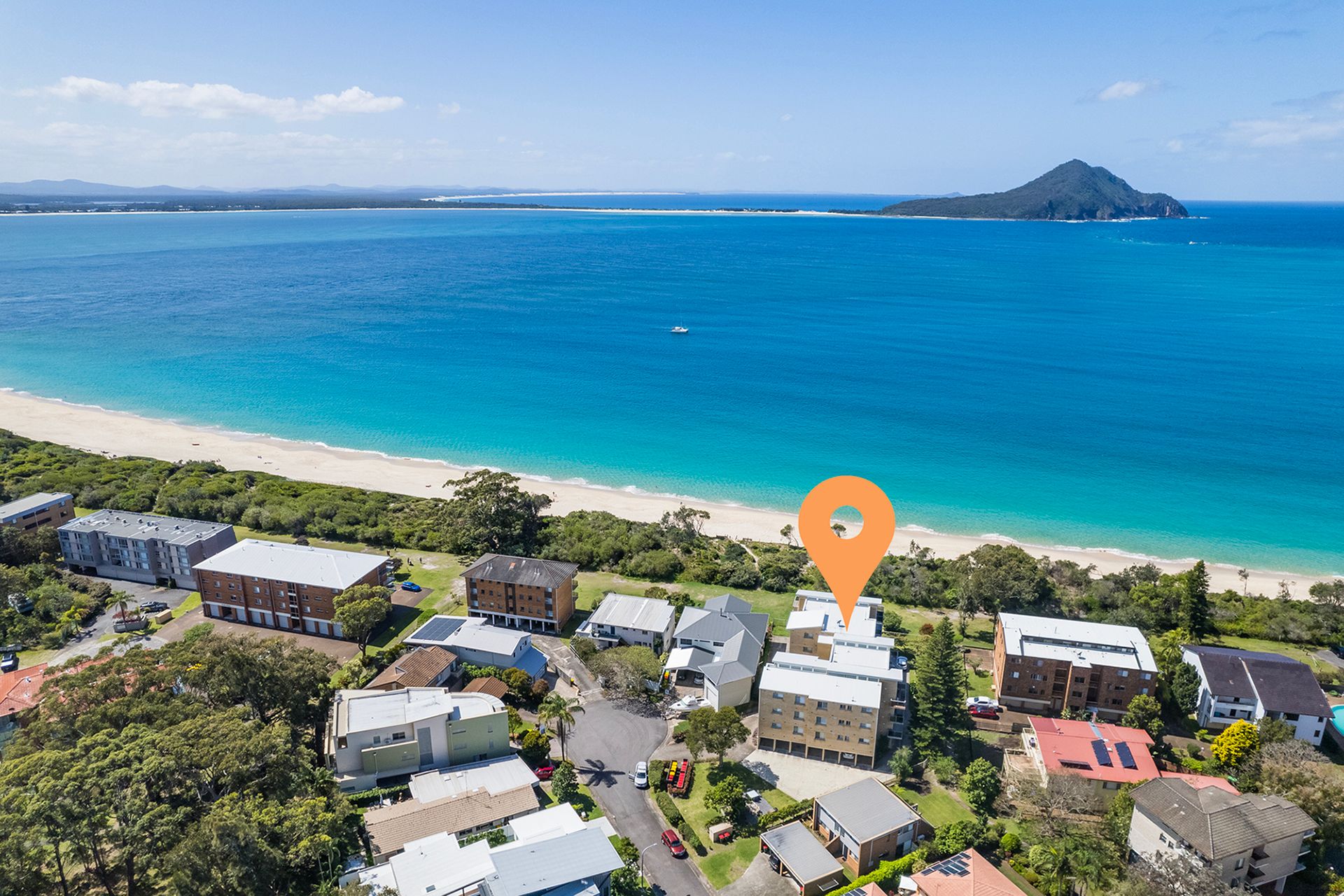 Immerse yourself in coastal luxury at 2 The Helm, a stunning waterfront with only the grass reserve separating you from the white crystal sands of Shoal Bay beach. Nestled within the heart of Little Beach at Nelson Bay and a quick five-minute walk and you have Little Beach which has the calm swimming waters for children.