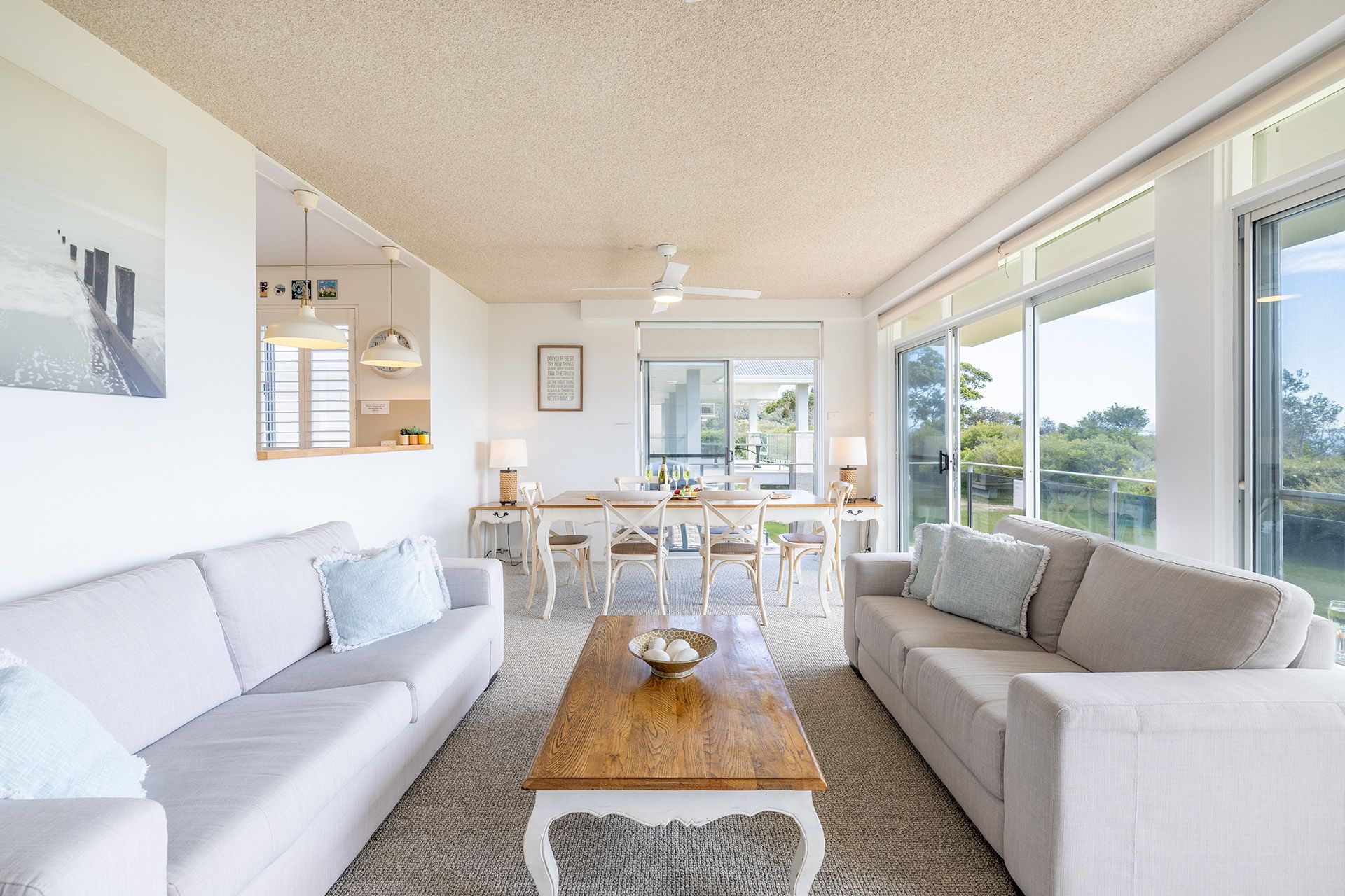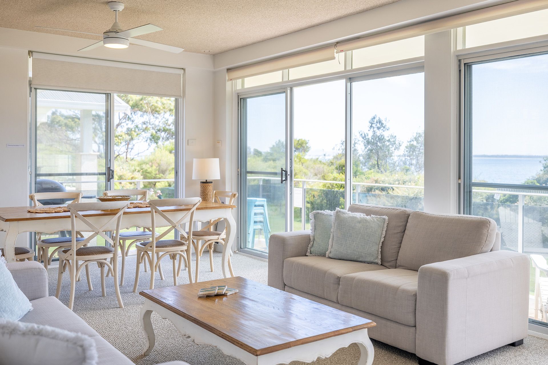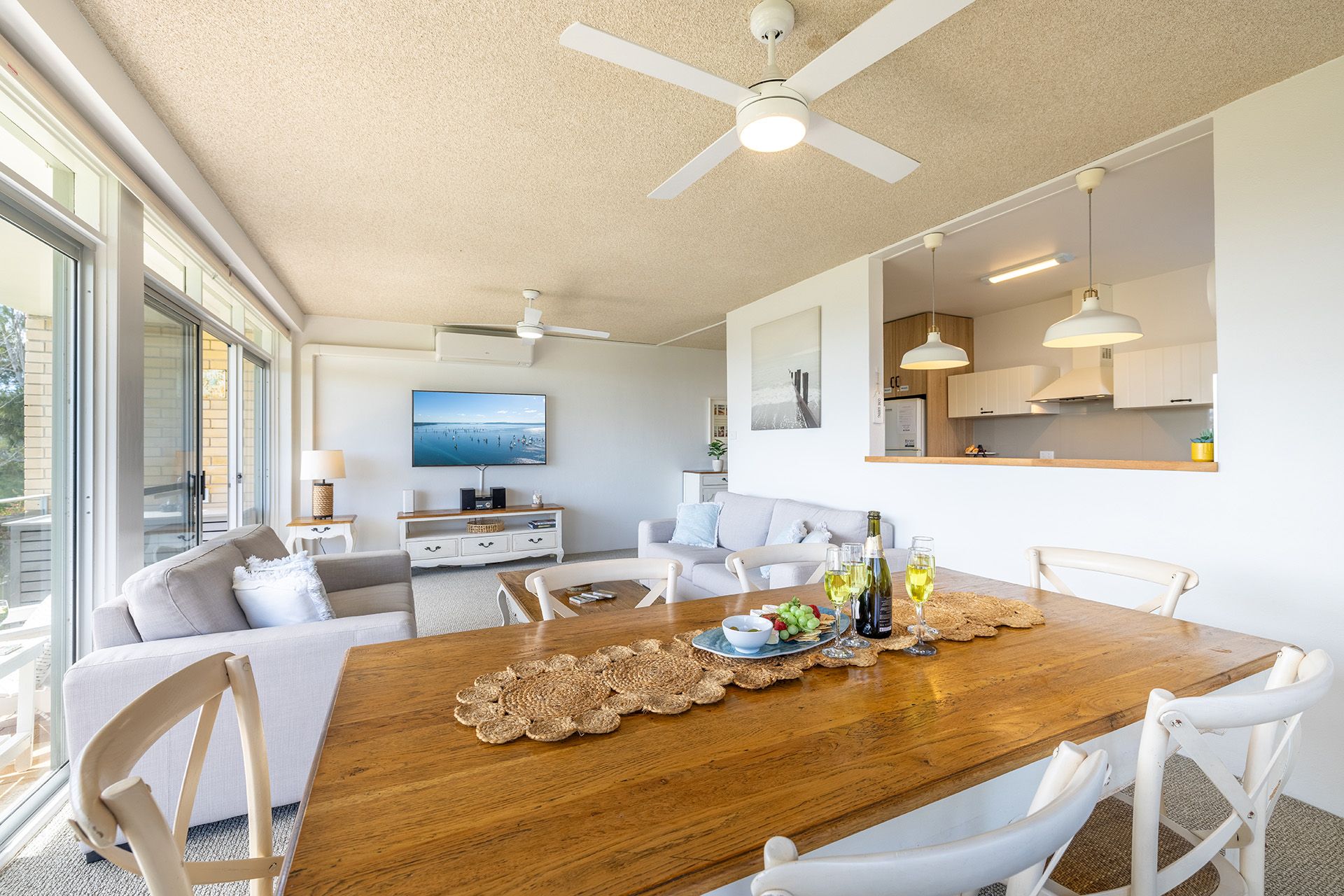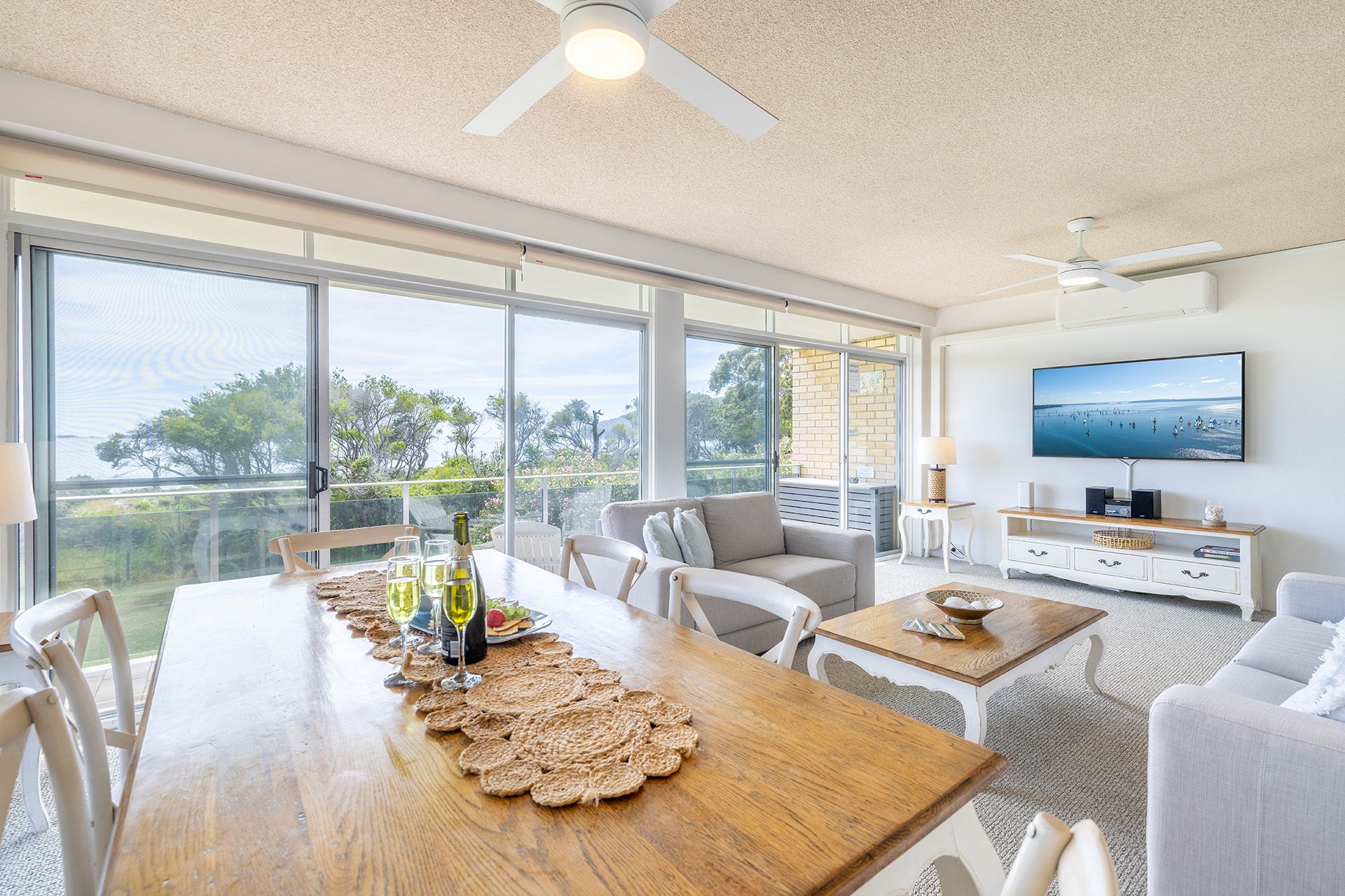 With premium air conditioning across split and reverse systems and ceiling fans, this exquisite holiday unit accommodates up to six guests in utter comfort and style.