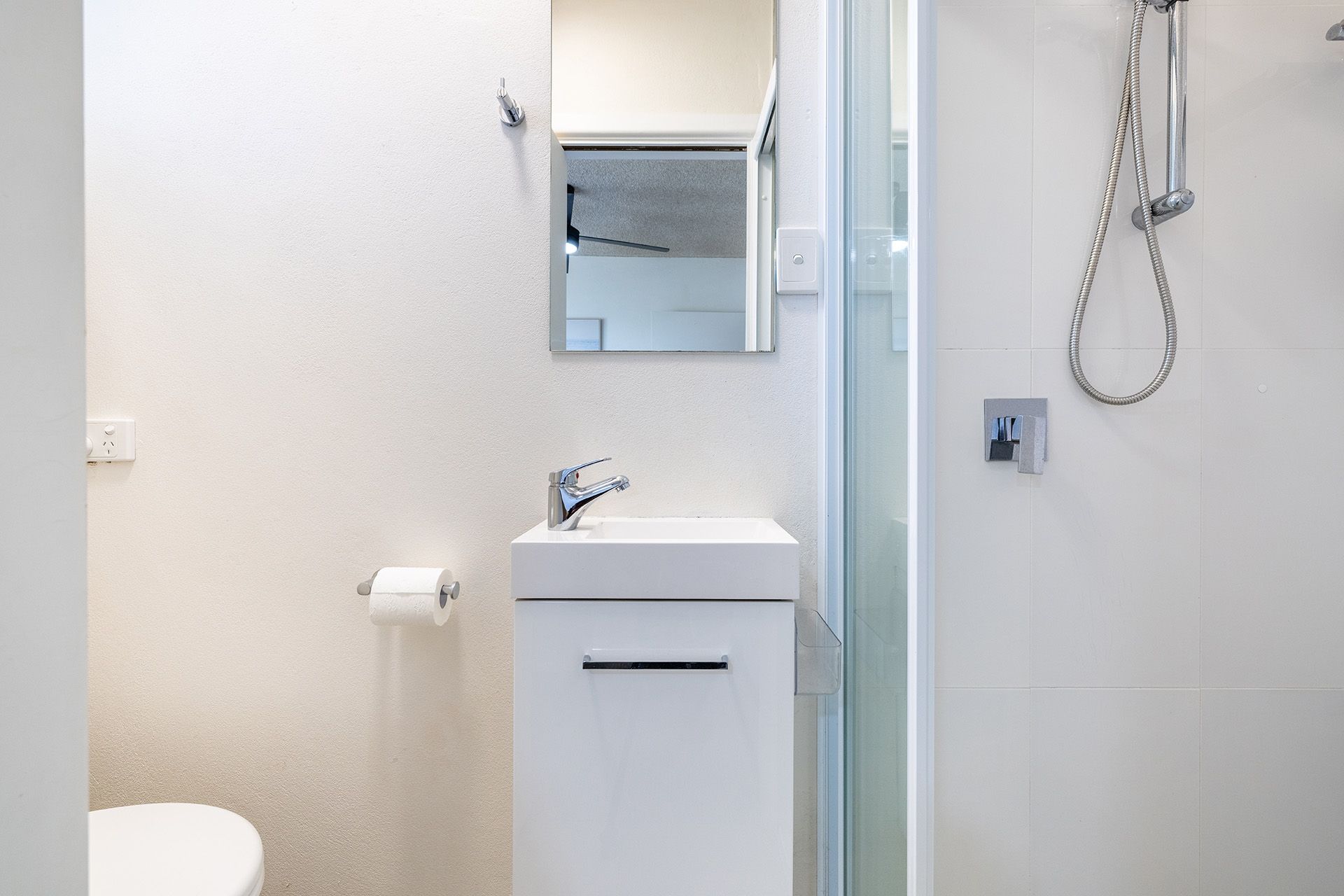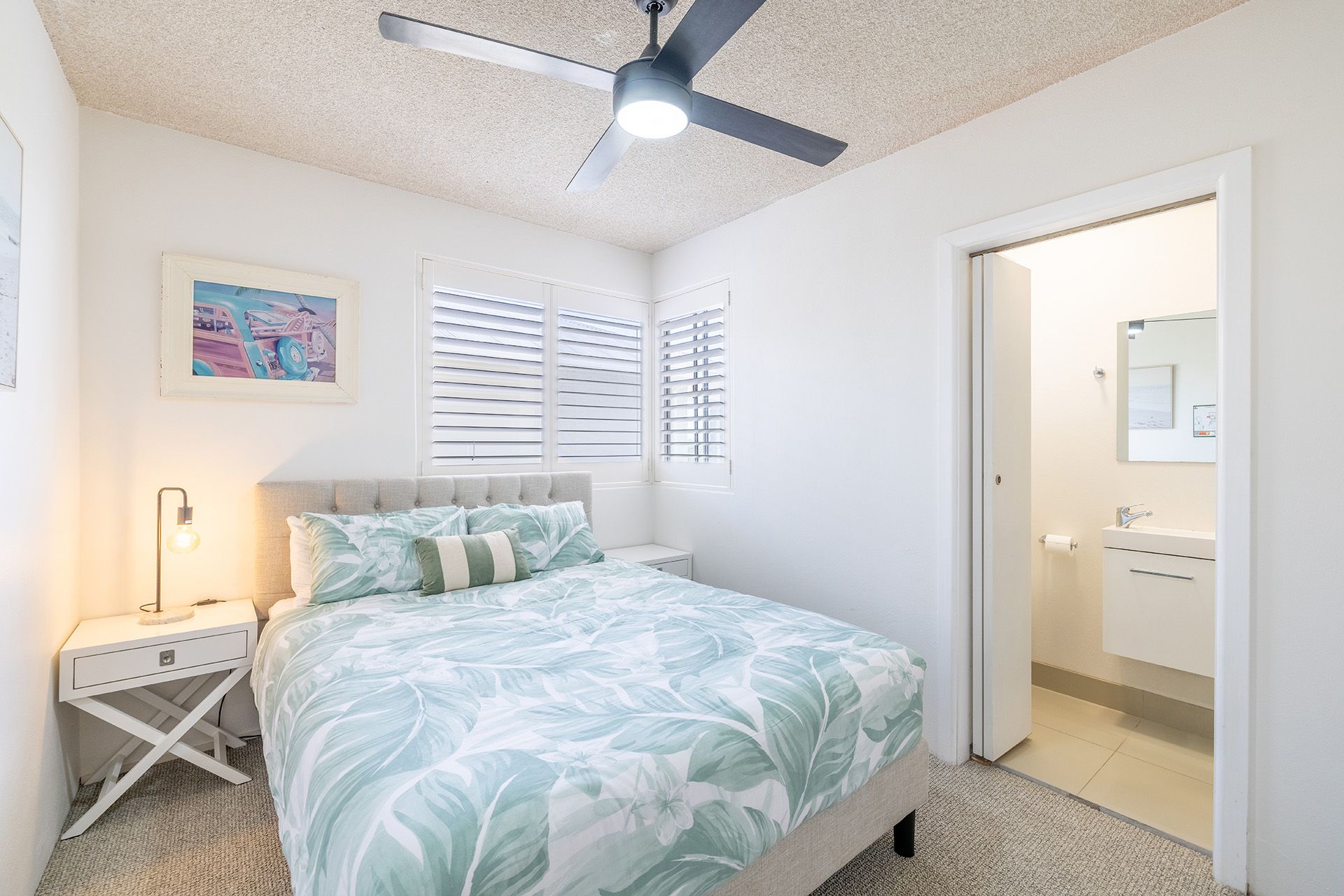 Bedroom 1 - Queen Bed + Ensuite + Ceiling Fan