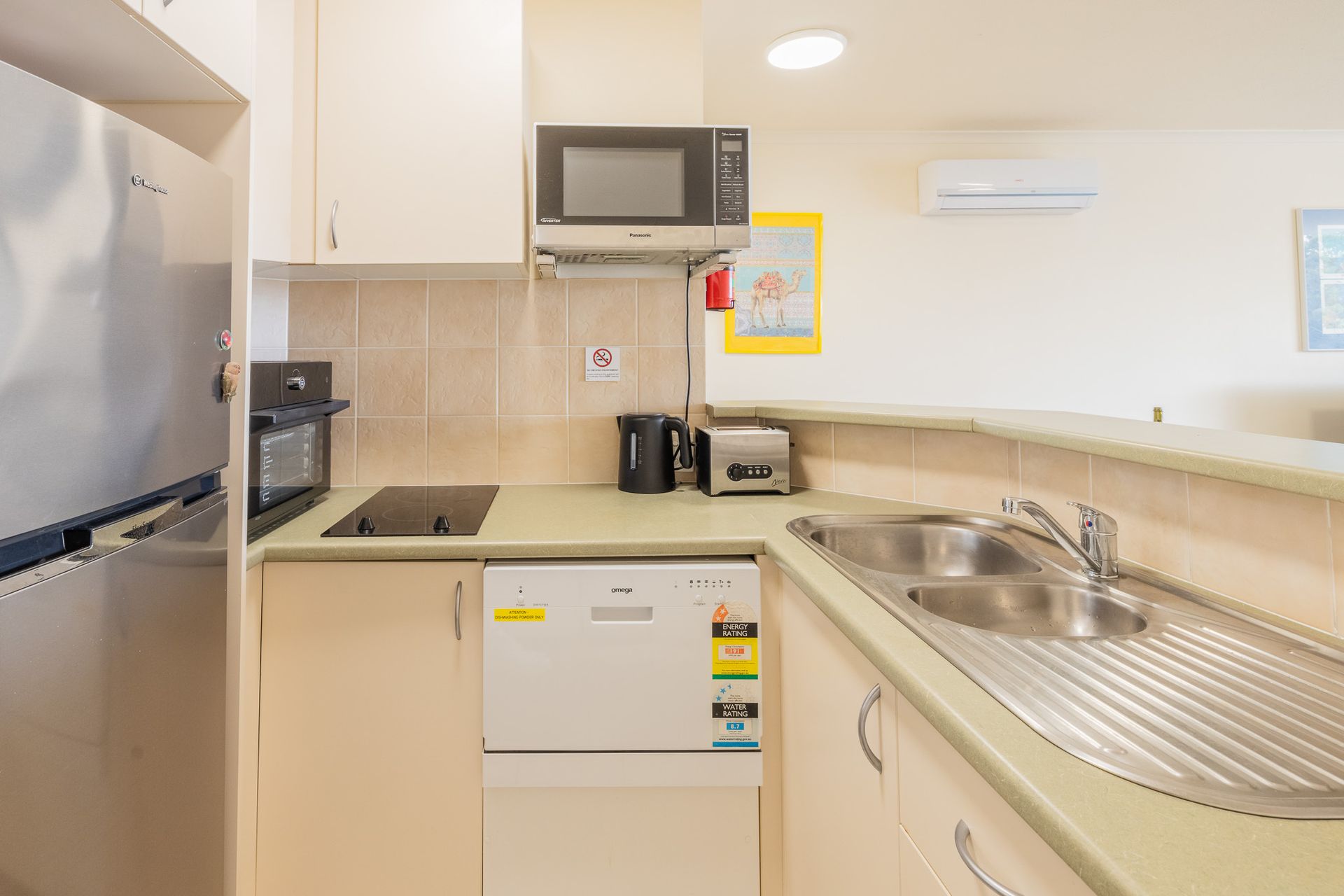 The kitchen features a dishwasher drawer, microwave oven, family size fridge / freezer and Digital Air Fryer Oven. The air conditioned, open plan dining and lounge room offers a cosy setting, ideal for intimate meals or relaxed evenings in front of the television.