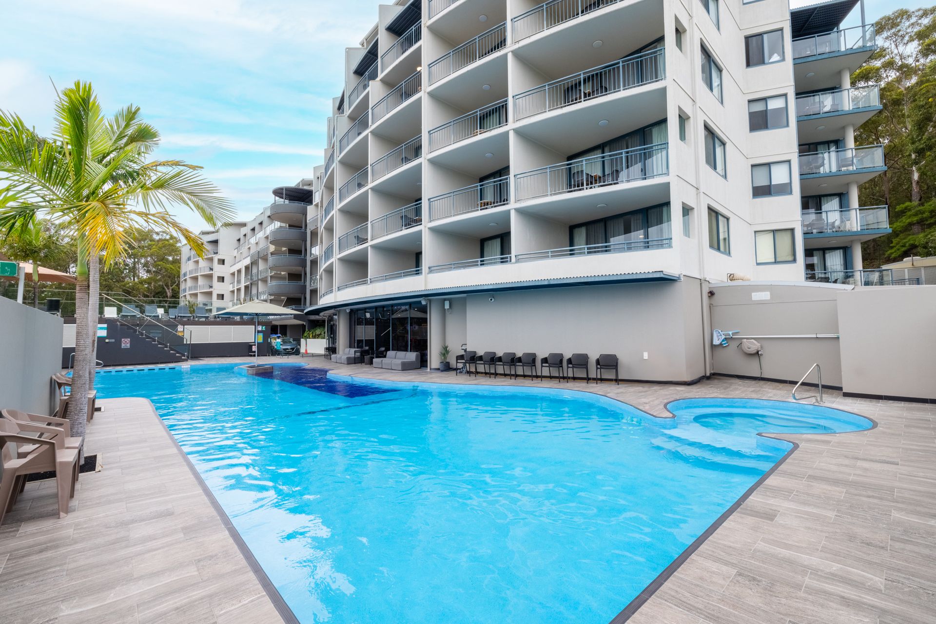 Step onto the gorgeous balcony and wow at the views Nelson Bay has to offer or sink into the communal swimming pool after a long day of exploring. The property comes with two parking spaces, a shared external coin operated laundry located on level 1 with front loader washing machines and dryers – cost $4- per load.