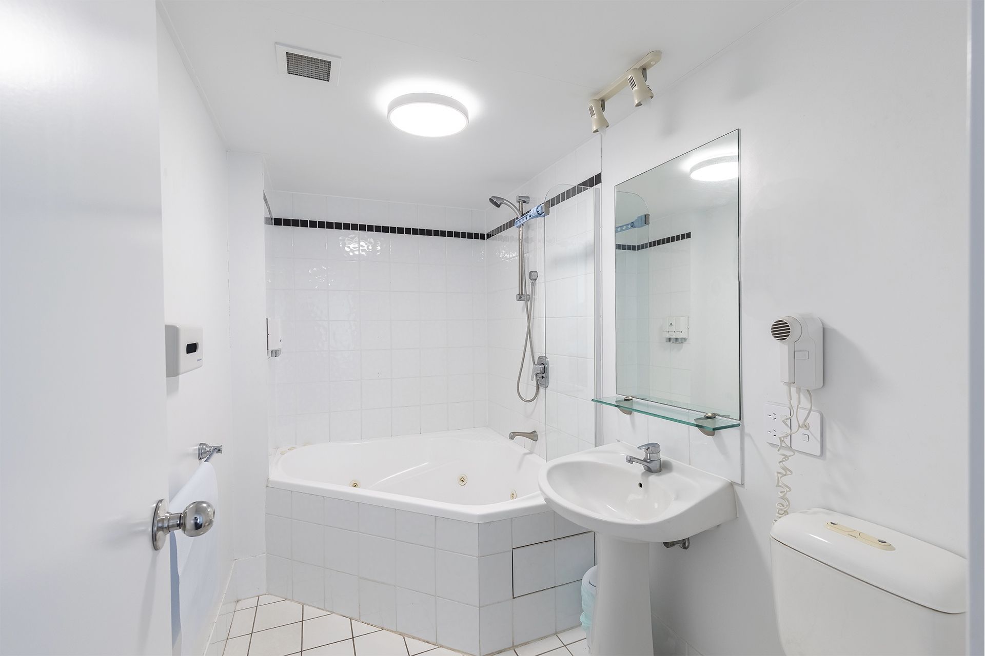 Bedroom 1 has a Queen bed and the comforts of a ceiling fan, whilst the second bedroom is a cosy cove of comfort equipped with two Single beds and ceiling fan, ensuring a comfortable rest. Share the bathroom that comes complete with a corner spa bath with shower above for those moments you seek rejuvenation after your adventures.
