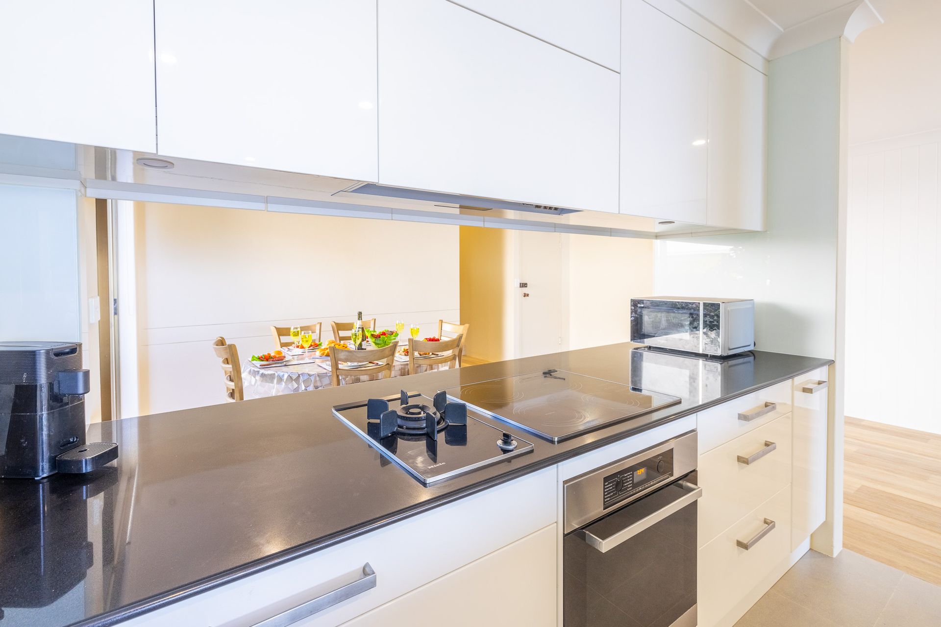 Your entertainment and convenience needs are well catered to with a multitude of amenities. A fully equipped kitchen with induction cooktop (please note the gas burner is not connected), makes it easy to prepare scrumptious meals, there is also a microwave, under bench oven, family size plumbed fridge/ freezer and Aldi coffee pod machine available.
