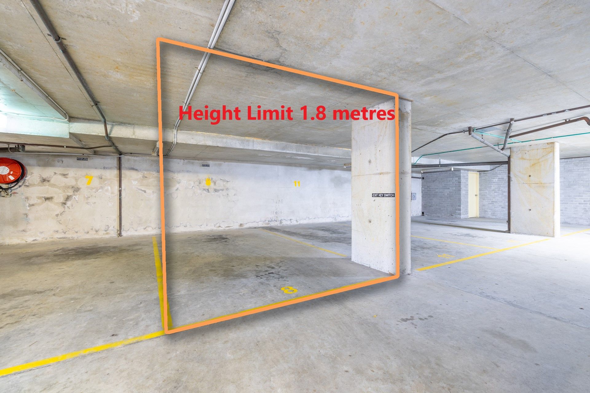 Parking: Single car spaces allocated in the secure undercover garage – Right hand garage access has a height limit of 1.8 metres, Left hand garage access has a height limit of 1.7 metres