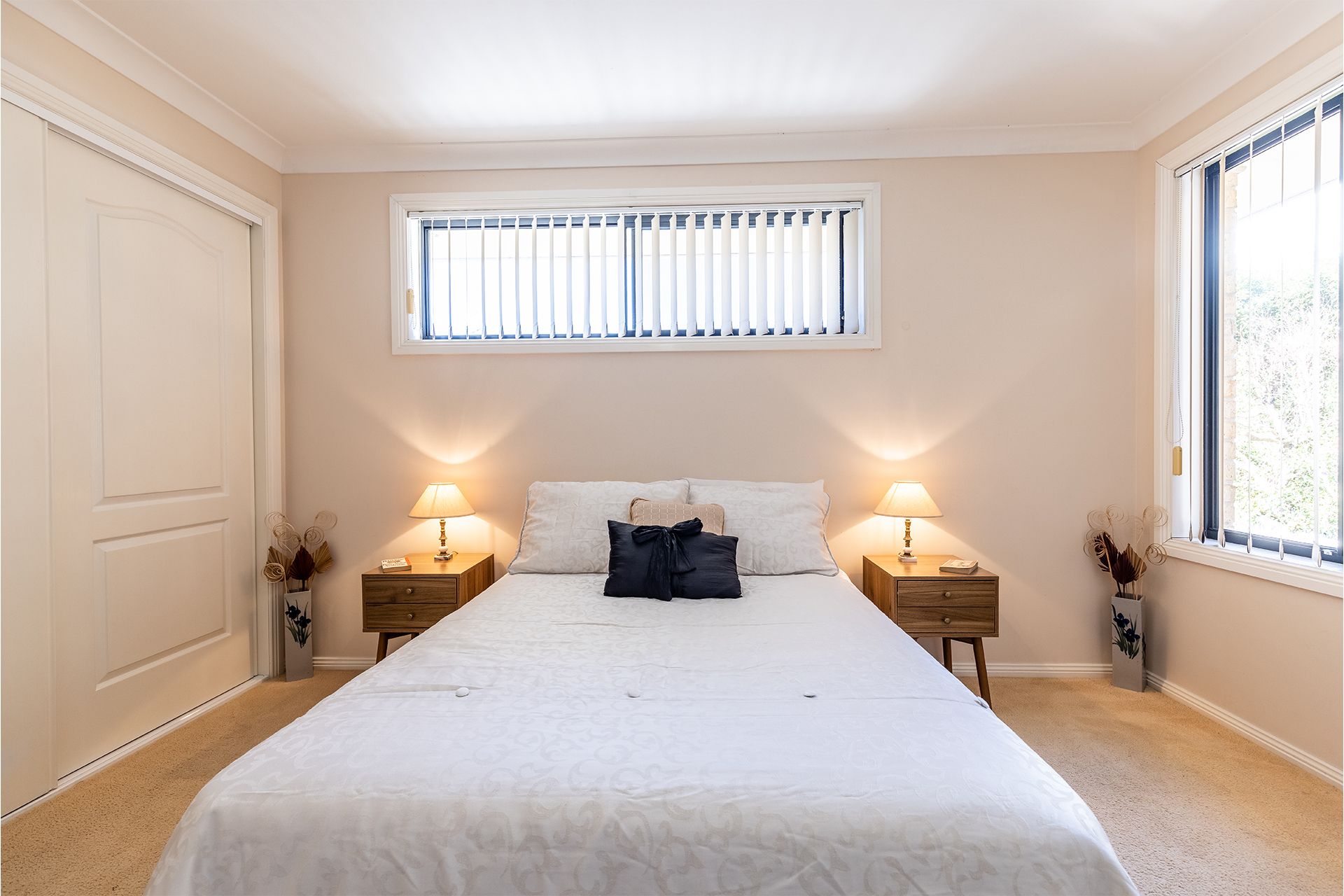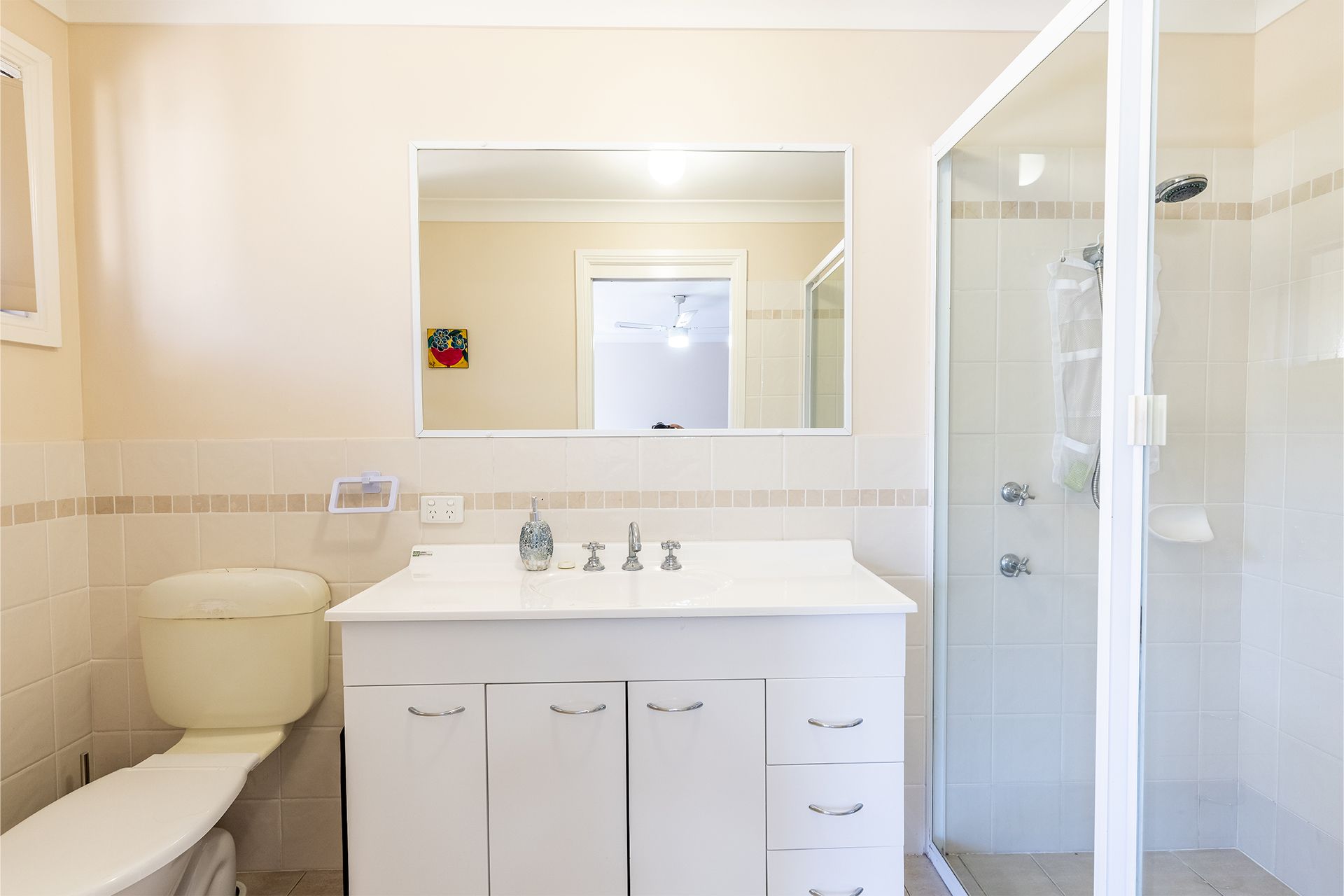 The main bedroom has a Queen-size bed with en-suite, ceiling fan and balcony access. The second bedroom has a Double sized bed with ceiling fan and the third has 2 Single beds perfect for the kids. The main bathroom upstairs has a shower, bath, toilet and vanity and a powder room is downstairs for convenience. The owners have provided a Port-a-cot, highchair, and bassinet for the convenience of young families travelling.