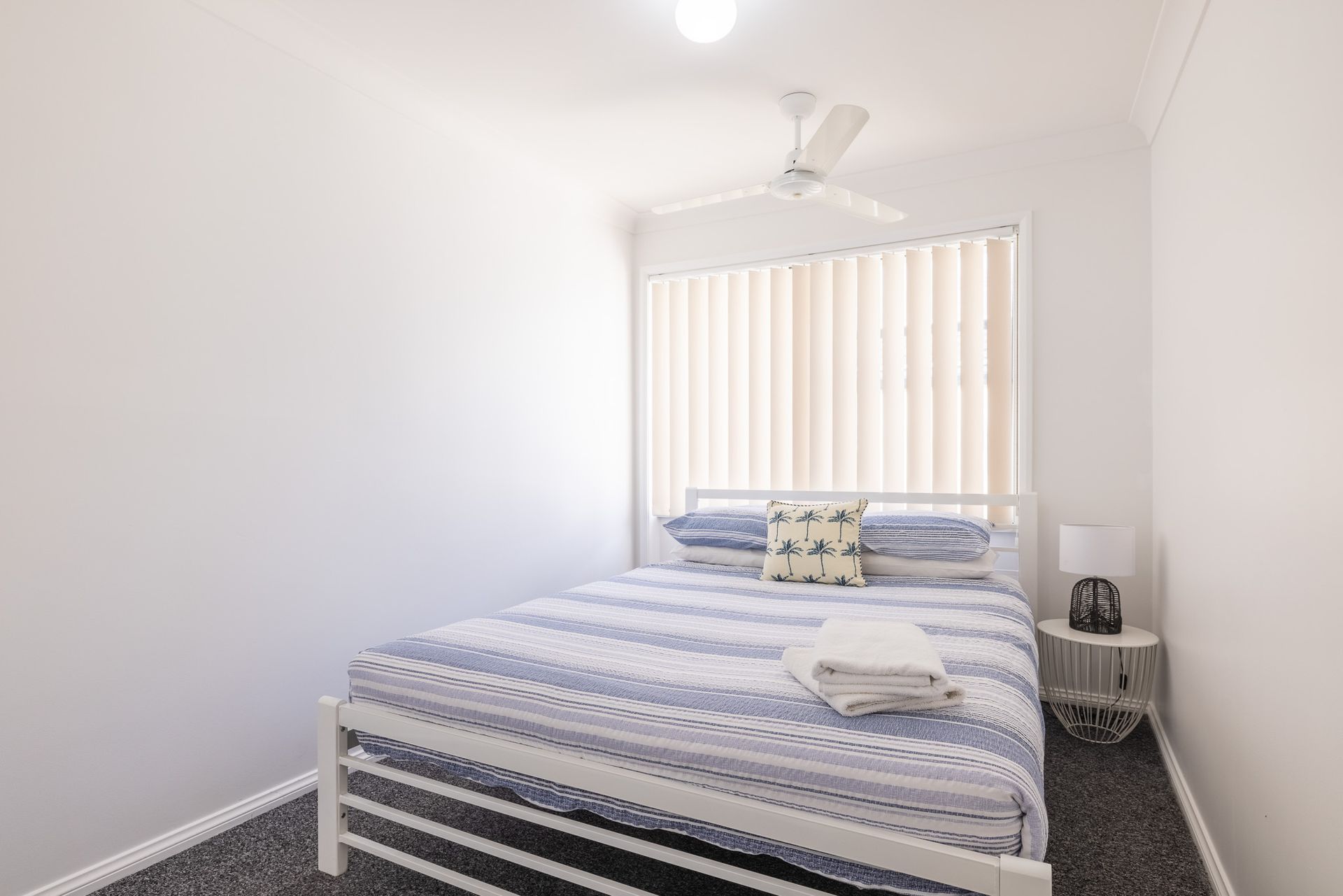 Bedroom 3 (upstairs) – Queen Bed + Ducted Air Conditioning + Ceiling Fan + Linen + Bed Making