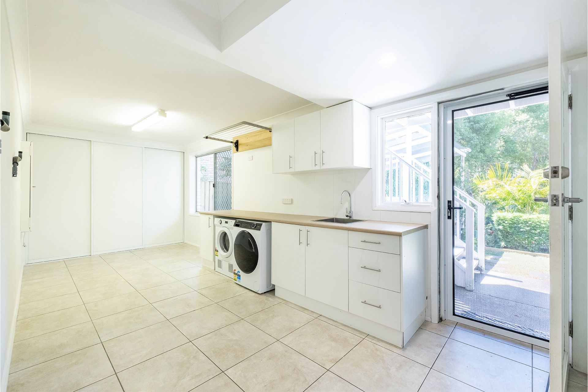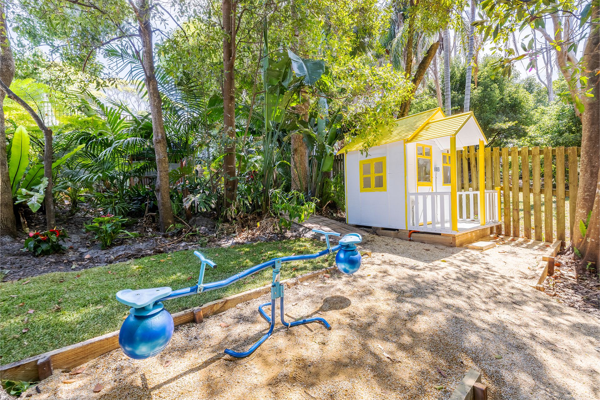 The tropical yard, solar heated pool and multiple outdoor living areas provide an inviting setting for family entertainment, privacy and tranquil relaxation. There is even a fabulous children’s entertainment area nestled among the trees with a cubby house and seesaw.