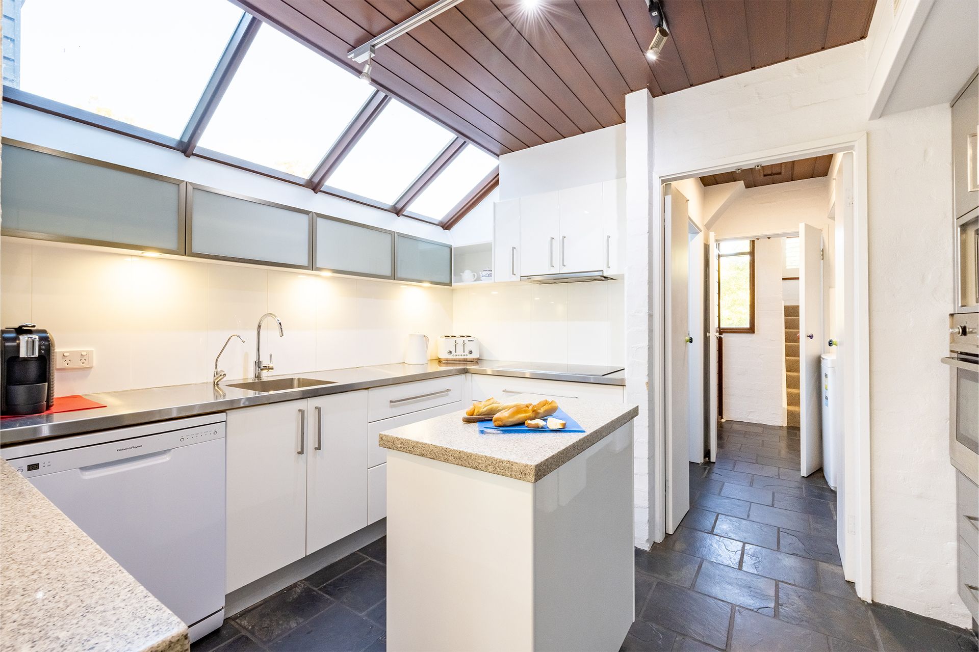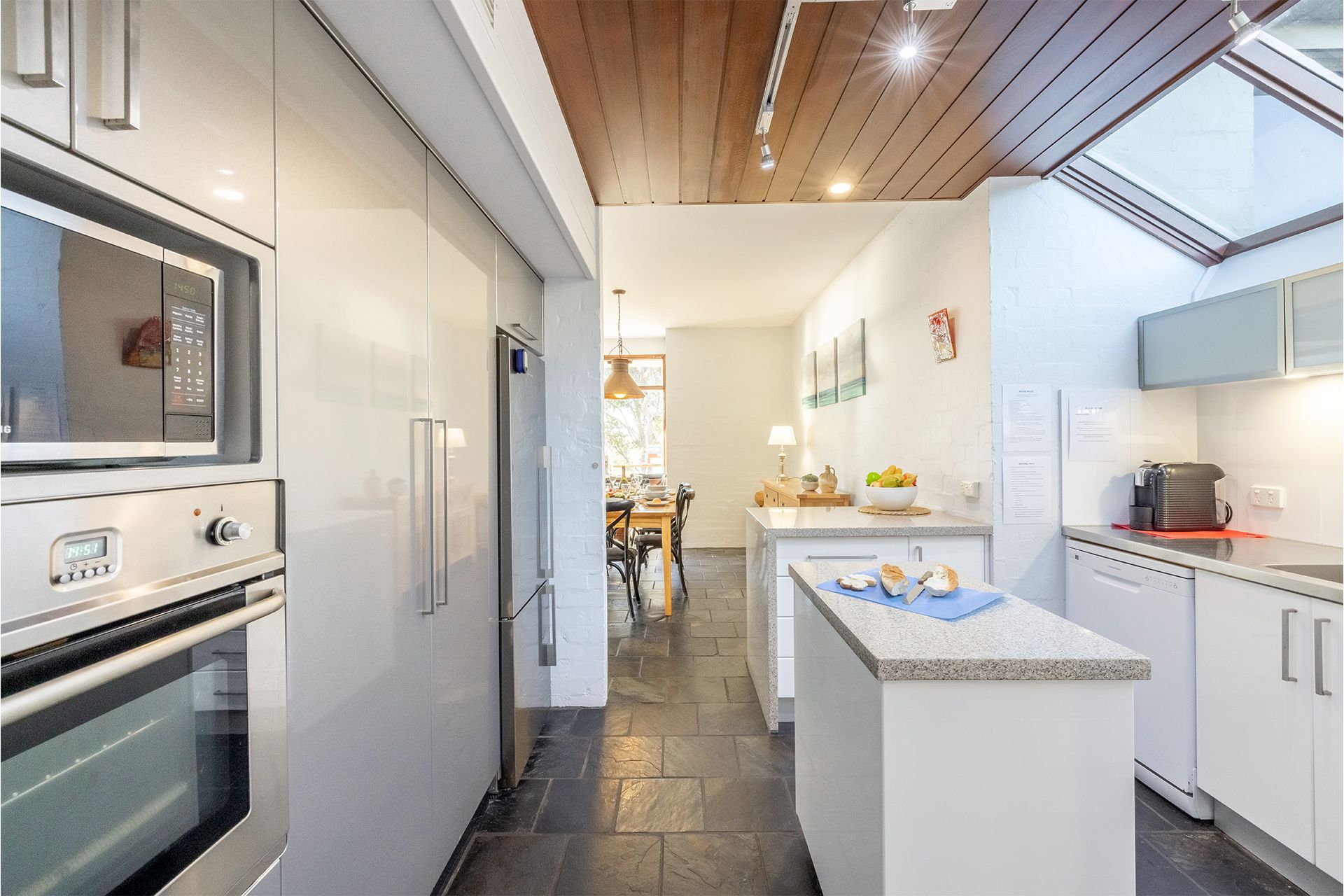 Wanda Waterview is spread over two levels. The ground floor showcasing stunning slate flooring throughout the large open plan sitting, dining area with a gas fireplace and seating for 8 guests. This area opens out onto the alfresco dining area with beautiful water and tree top views and gas BBQ facilities. There is also a fully equipped kitchen with complete cooking facilities including electric induction cooktop, wall oven, microwave, Aldi K-Fee coffee pod machine, new family size fridge/ freezer and dishwasher.