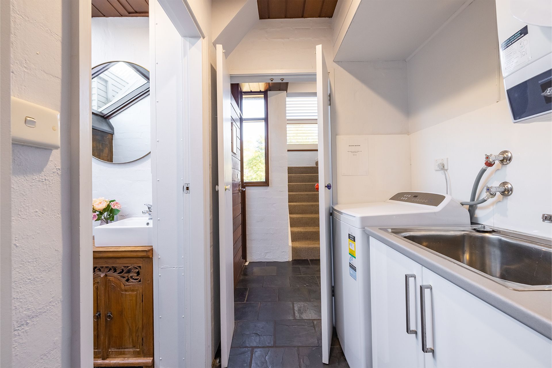 The third bedroom is also located downstairs and has a ceiling fan and access to the side courtyard to allow the sea breeze to flow through, there is a powder room and laundry downstairs, the laundry is fitted out with a top loader washing machine, dryer and the powder room with toilet and vanity runs off the laundry.