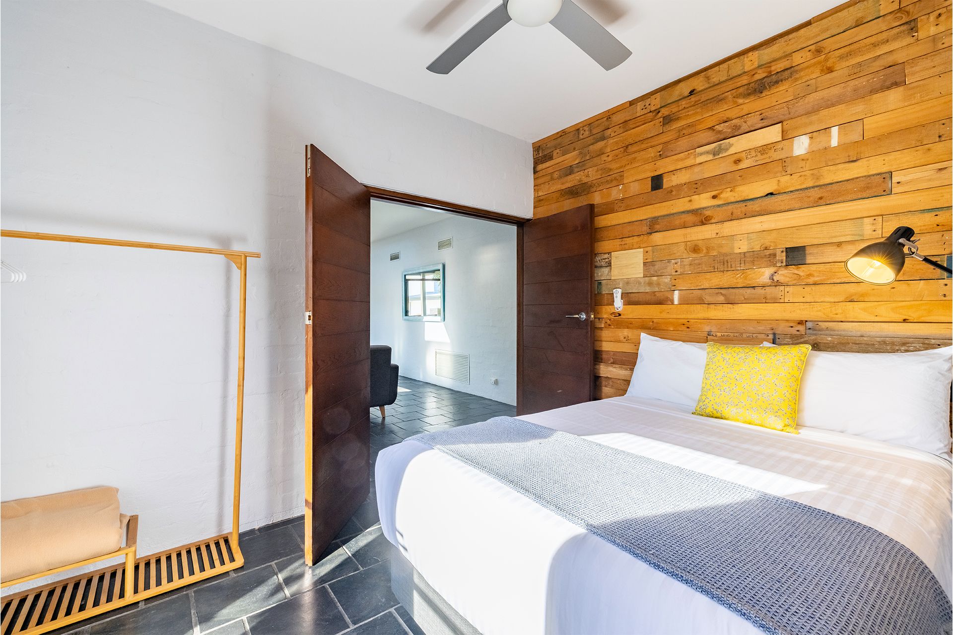 Bedroom 3 (downstairs) โ Double Bed + Ceiling Fan + Private External Access + Linen + Bed Making