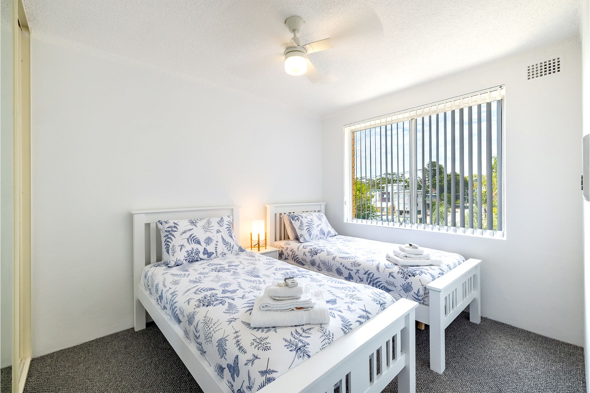 Bedroom 2 – 2 x Single Beds + Ceiling Fan + Linen + Bed Making